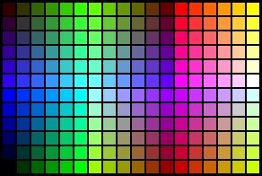 Enter a hexadecimal string (000000 - FFFFFF) in the box to display its color and decimal values. Alternatively, click a color on the grid below to start: